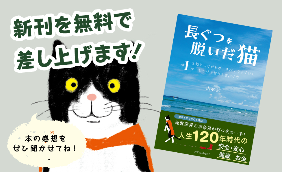 当社の企業理念、ブランドストーリーを記した新刊『長ぐつを脱いだ猫 vol.1 大地とつながればすべてうまくいく アーシングで整う生き抜く力』(山本強 著・カナリアコミュニケーションズ)が刊行されました。